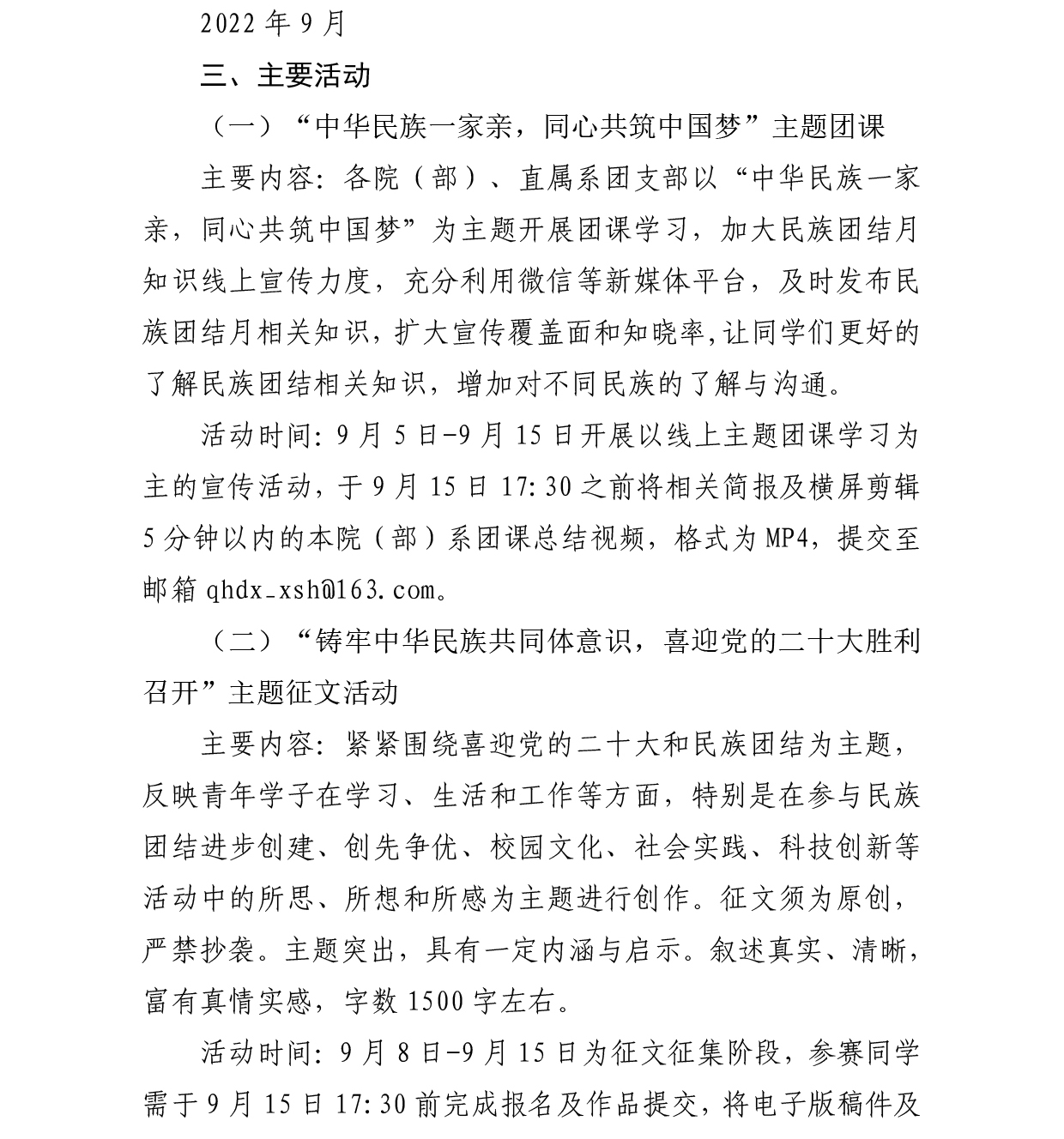 关于开展“中华民族一家亲,同心共筑中国梦” 2022 年民族团结进步宣传月系列活动的通知